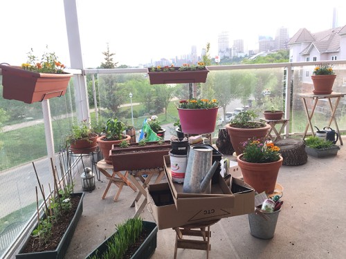 Là je suis un peu jalouse de ton balcon. Nous à Montréal, il fait tellement froid et moche que je suis en train de tuer mon 2e plant de basilic. Et ne parlons même pas de mon joli oranger-jasmin qui, après avoir souffert du manque de lumière tout l’hiver, s’est maintenant tellement déplumé qu’on dirait un squelette… 😥