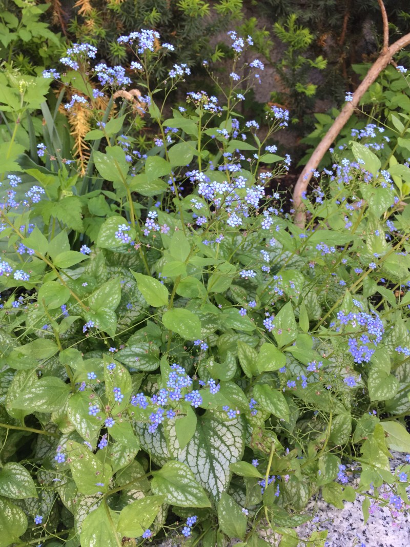 les petites fleurs bleues, forget-me-not, les myosotis, les blanches, des anémones du japon? un peu tôt dans la saison, mais au Canada, on s’attend à tout! 😛
