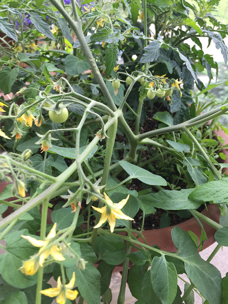 le balcon est tout beau, et tu as déjà des tomates, je n’en reviens pas de ton climat, qui souffle le chaud et le froid, quelle différence d’il y a deux mois!!