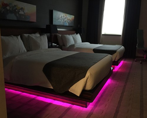 On est allés dîner à Saltlik, une steakhouse que j’aime bien, puis on est allés dans son hôtel, près de l’aéroport. Les lumières roses sur le toit de l’hôtel et sur les lits dans notre chambre, ainsi que la douche complètement dingue, nous ont bien fait rire! On a beaucoup papoté de nos familles (nos mères sont soeurs, donc) au bar de l’hôtel en buvant un peu trop d’alcool… Et la nuit a été difficile parce qu’il faisait trop chaud et la clim était hyper bruyante. Mais on a vraiment passé une chouette soirée et je n’ai pas regretté une minute les 600 bornes que j’ai faites pour aller voir mon chouette cousin que j’aime beaucoup, même quelques heures seulement!