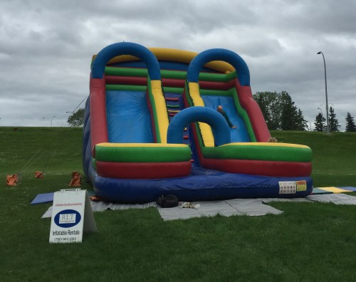 Notre bouncy castle, (arrimé avec des sacs de sable!) où les enfants et les adultes pouvaient s’amuser, était très chouette (autres images de différents bouncy castles):