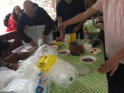 Pour le dessert, il y avait un ice cream bar, avec plein de toppings à ajouter sur sa glace (je pensais que personne ne voudrait de glace, avec les températures glaciales qu’il faisait, mais notre bar a eu un grand succès).