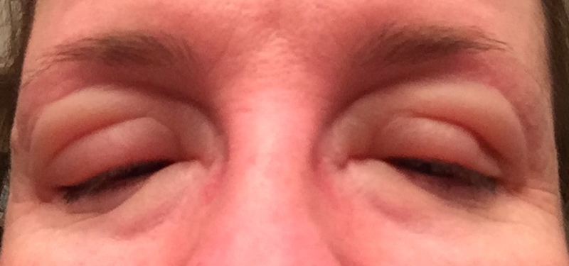 Je n’ai pratiquement pas dormi, cette nuit-là, parce que ma gorge était encore tellement enflée que je ronflais dès que je m’endormais, ce qui me réveillait à chaque fois. J’avais encore très mal à la gorge le lendemain, et il a fallu QUARANTE-HUIT HEURES (et quelques glaçons) pour que mes yeux retrouvent leur taille normale! Mes bras et ma cuisse sont encore violets et douloureux des injections et autres perfusions ratées, et j’ai maintenant une epipen dans mon sac à main.
