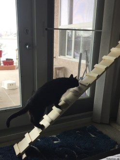 Vous vous souvenez de la petite échelle que j’avais construite en décembre pour Calinette? Calinette est monté dans son arbre à chat seulement deux ou trois fois depuis, et à chaque fois, il fallait que je sois avec elle pour l’aider à descendre de l’arbre sur cette petite échelle en cliquant de l’ongle sur les marches pour qu’elle arrive à les trouver. A chaque fois qu’elle était bien descendue, je lui donnais quelques gâteries pour la récompenser de ses prouesses. […]