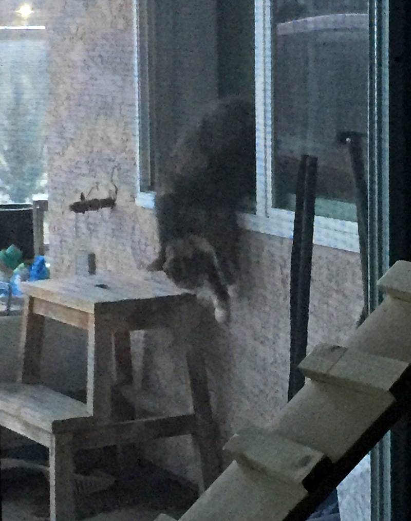 Le 3ème jour, Miss Penny a découvert le loft! Elle ne s’est pas installée dans le grand fauteuil préféré de Calinette mais sur mon fauteuil de bureau, avec une petite couverture, et elle y a dormi toute la journée. Pendant la nuit, elle est entrée dans ma chambre et a sauté sur mon lit, mais en est rapidement repartie dès que j’ai ouvert les yeux.