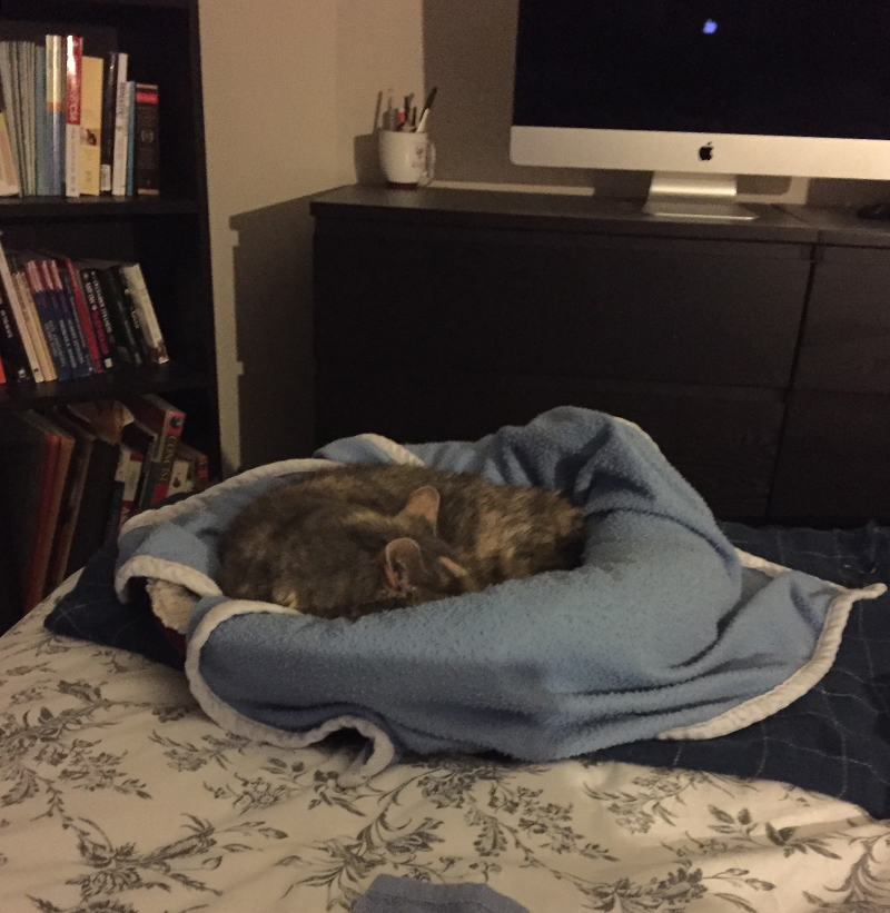 Oui, un monde sans poils de chat partout et sans litière à changer tous les jours c’était très agréable! Mais pouvoir protéger et procurer un peu de calme et quelques câlins à une toute petit Penny, ce n’est pas mal non plus ❤