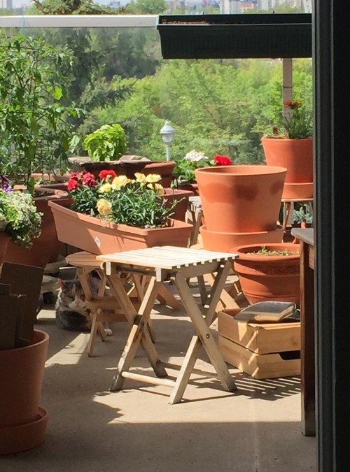c’est sympa! et le geste et le balcon, et bientôt, même Miss Penny ne pourra plus y mettre un pied, tellement ça sera fleuri, LOL!