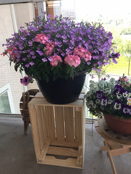 Le truc pour les trois pots de fleurs? C’est sympa, oui, sauf que c’était trop petit pour mes pots 😆 Mais bon, je n’ai qu’à trouver d’autres pots et d’autres fleurs, pas difficile, hehe!