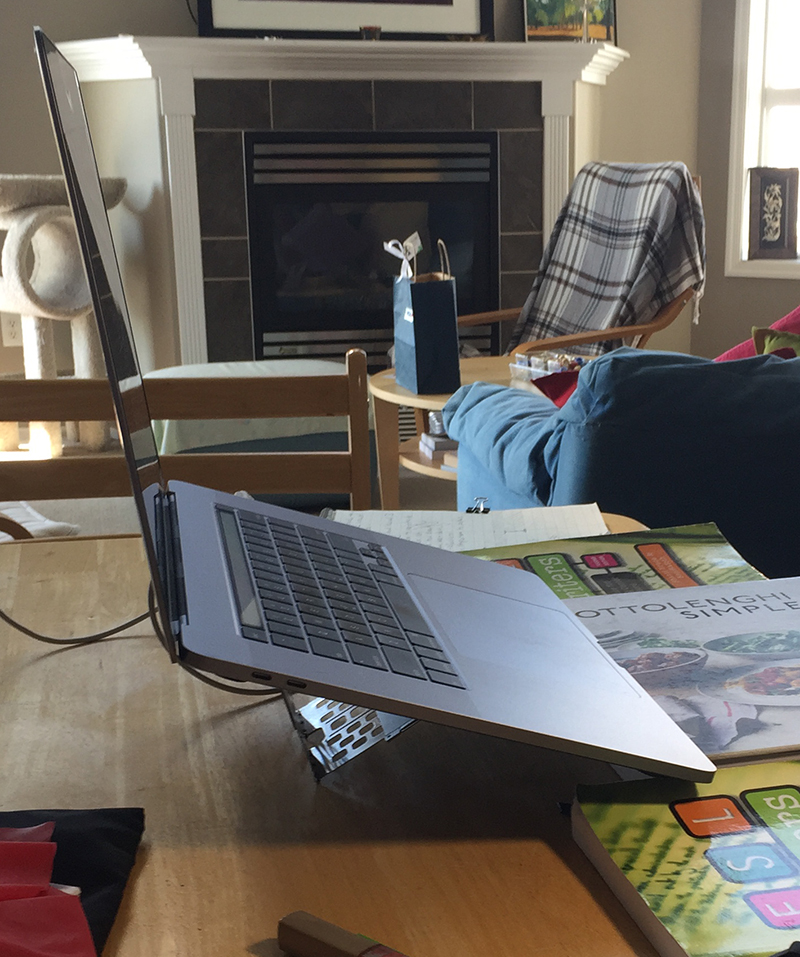 Comme je peux difficilement transporter un ordi d’un endroit à un autre, je suis obligée de faire preuve de créativité (et de dollars) 🙂
