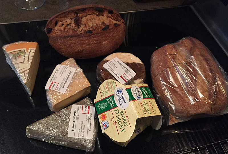Alors je vais juste vous montrer où j’ai dépensé $105 hier (ça faisait au moins un mois que je n’avais acheté ni pain ni fromage parce que mon pauvre boulanger a du mal avec ses livraisons internationales de fromages),