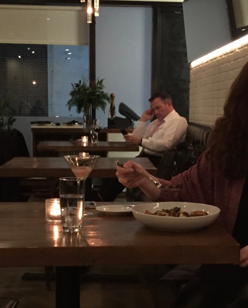 Je suis arrivée au resto avant ma copine, et Patrick m’a fait un peu la causette, m’expliquant que cette dernière restriction les avait forcés à fermer leur restaurant à midi, puisque leur clientèle était les businessmen des bureaux du centre ville qui donc maintenant ne pouvaient plus manger ensemble. J’ai dit “pour moi aussi cette nouvelle restriction est vraiment chiante!” Et Patrick a répondu “Tu pourras te plaindre à lui!”