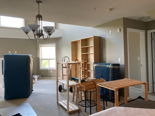 heureusement que ce déménagement a été pris en charge par ton nouvel employeur..tu arrives presque au but..le matelas n’est peut être pas aussi confortable que ton vrai lit, mais courage, plus que quelques jours!