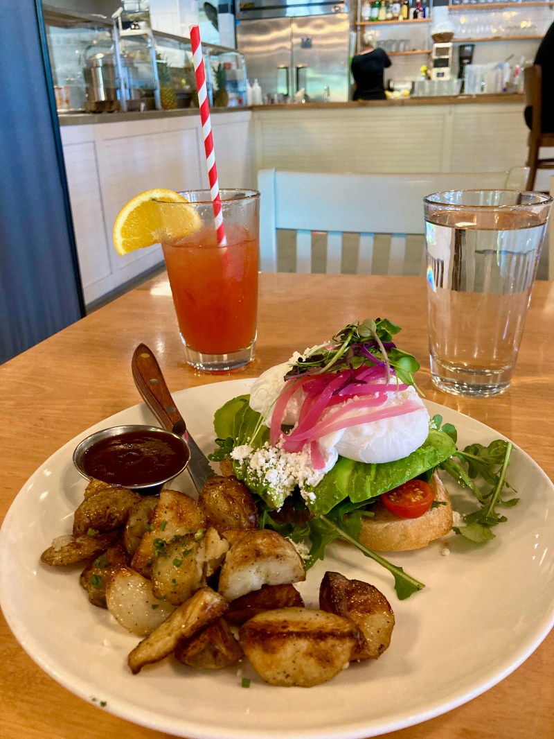 Pour me consoler je suis allée prendre un petit-déjeuner après mon cours (punaise, 9 heures du matin c’est tôt!) dans un petit café pas trop loin de chez moi. C’était sympa, et mon avocado toast avec deux oeufs pochés dessus n’était pas extraordinaire mais pas mauvais. Allez, 7/10.