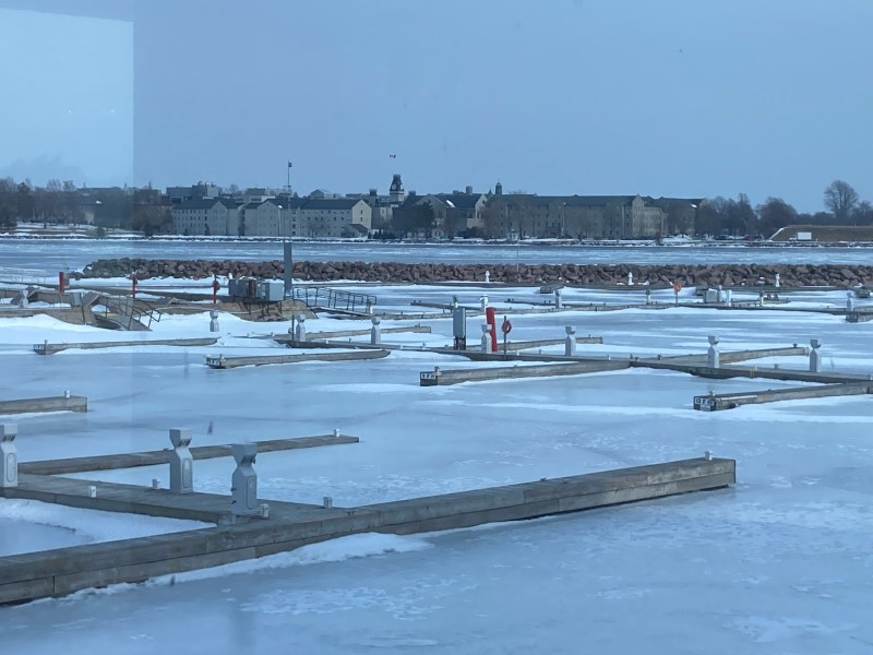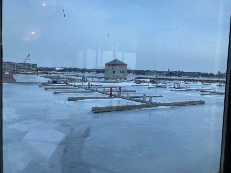 Par la fenêtre du restaurant où je suis allée manger, oui, parce que sinon je vois le parking du mall, par ma fenêtre d’ici!