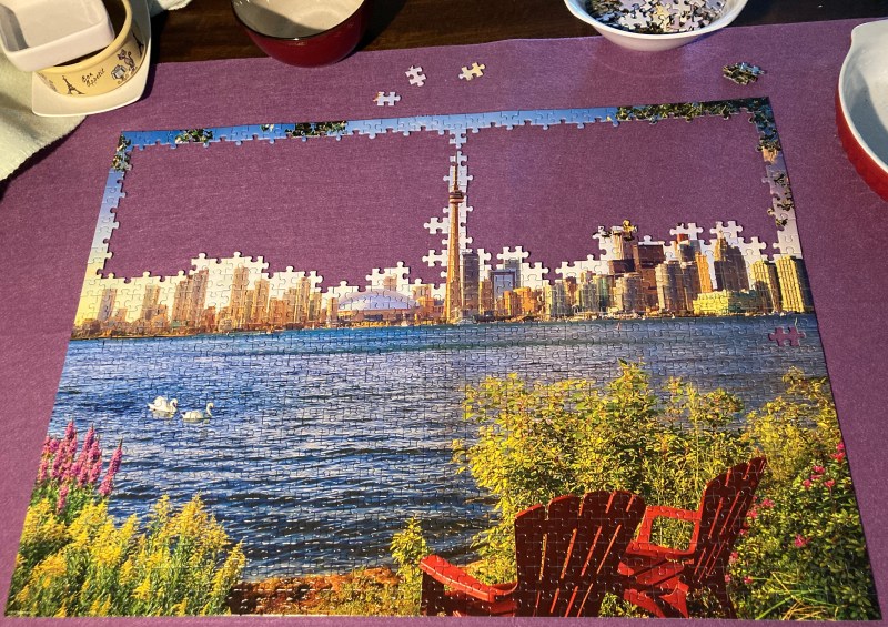 Je vais au boulot en voiture au lieu d’y aller en pyjama, je passe mes dimanches soirs chez ma copine Charlotte, je fais des puzzles, j’habite en Ontario, je hais mon appartement, je ne fais plus la cuisine pour ma gentille voisine anglaise (snif snif!!!), je vais chercher mes courses au magasin au lieu de me les faire livrer ce qui me fait économiser $50 par semaine, et Miss Penny me laisse lui faire un peu plus de câlins.