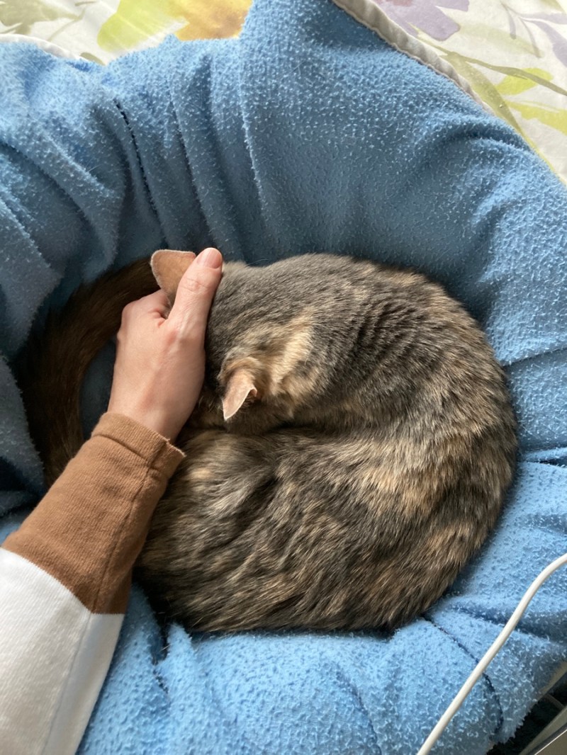 De la ronron thérapie avec miss Penny, des encouragements et des câlins virtuels, j’espère que ça ira vite mieux!