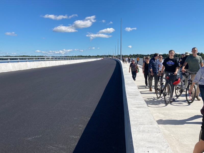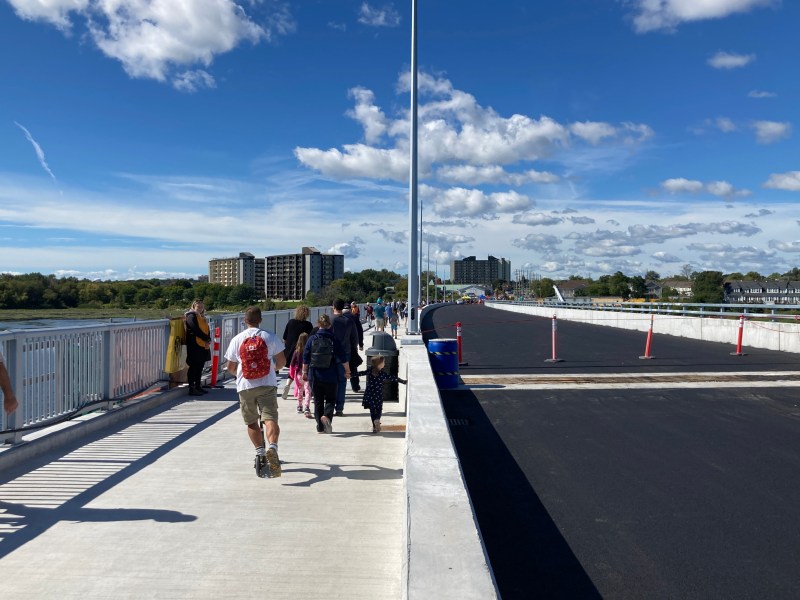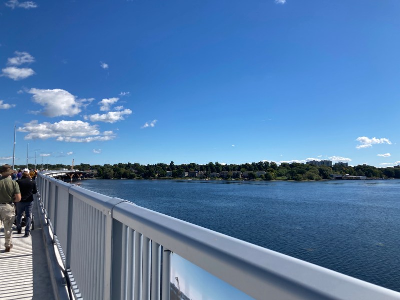 Mais samedi, le pont était ouvert au public (seulement samedi)! Pas aux voitures, mais aux vélos, aux piétons, aux chaises roulantes, aux patins à roulettes… et il fallait absolument que j’aille voir ça de mes propres yeux pour le croire!