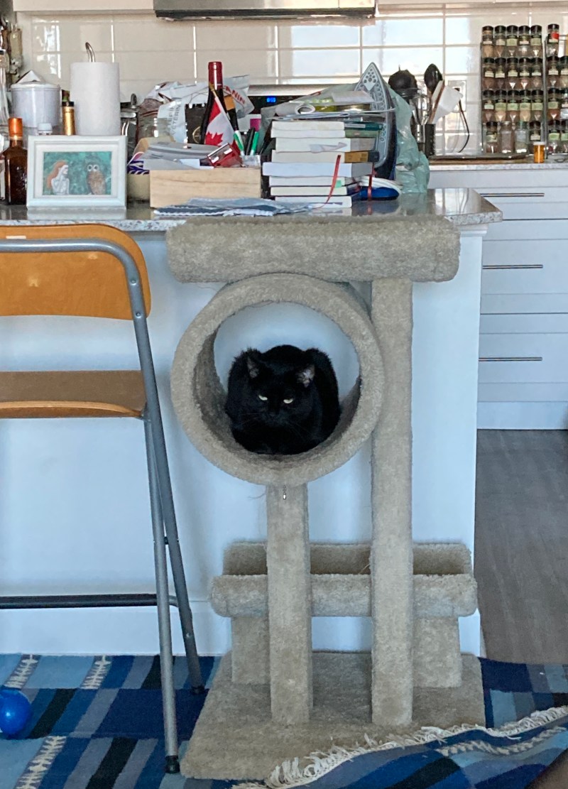 Or Rosie accepte so arbre à chat ou qu’il soit. Vénérable chatte.