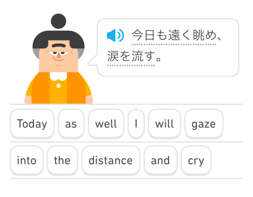 Je ne connais ce truc que de nom, je crois que certains de mes élèves l’utilisent, mais la plupart en rigolent, ils ont bien compris qu’on peut juste apprendre du vocabulaire, mais pas la langue. Manifestement, aucune chance de comprendre les déclinaisons ou le système des cas avec Duolingo.
